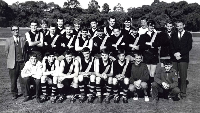 Back Row: Dave Thomas, Wayne Peacock, Jack Wagg, Erminio Rossetto, Peter Grant, Ian Gaff, Ron Baker, Peter Catarinich (Coach), Unknown, Unknown, Des Thompson, Terry Rosenbrock.