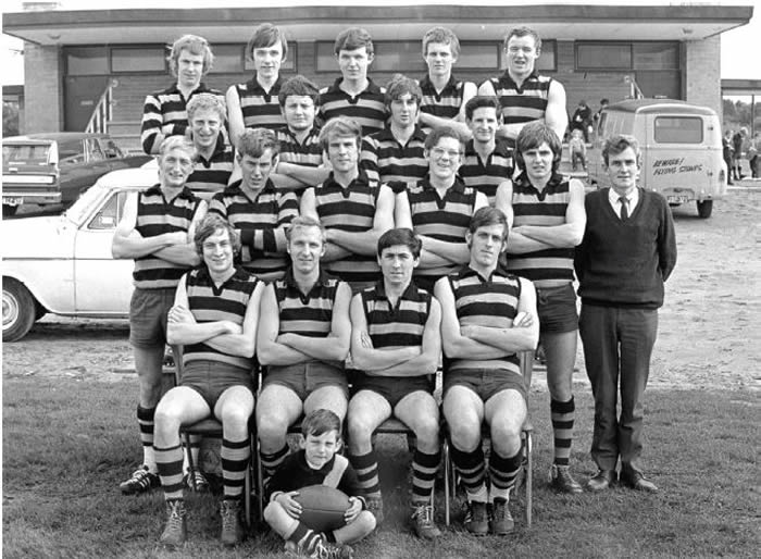 Centre Row: Frank A Fitzpatrick (Manager), Paddy Rosenbrock, Malcolm Sutton, John Smith, Barry Francis, Greg Cattenach, Martin Leivues, Trevor Curl, Rev. Father Sheehy, Eric Paganoni (Coach)