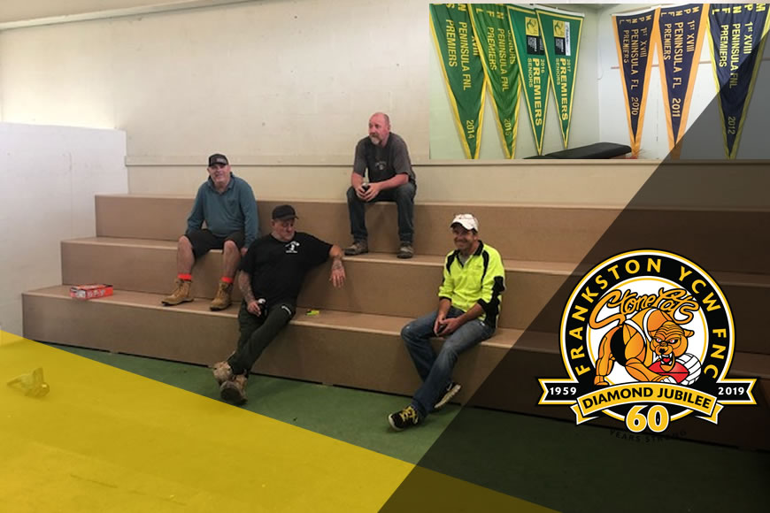 Club stalwarts Blicky, Laney, Whitey, Amanda and coach Cappy built some tiered seating in preparation for our round 1 clash against Sorrento next weekend.