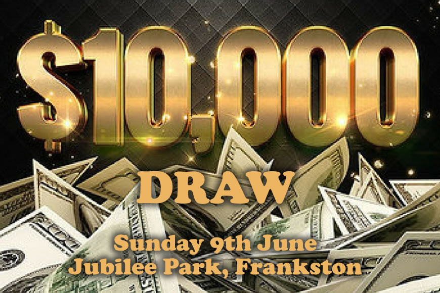 $10,000 Draw - Sunday 9th June @ Jubilee Park, Frankston. 12 - 3.00pm